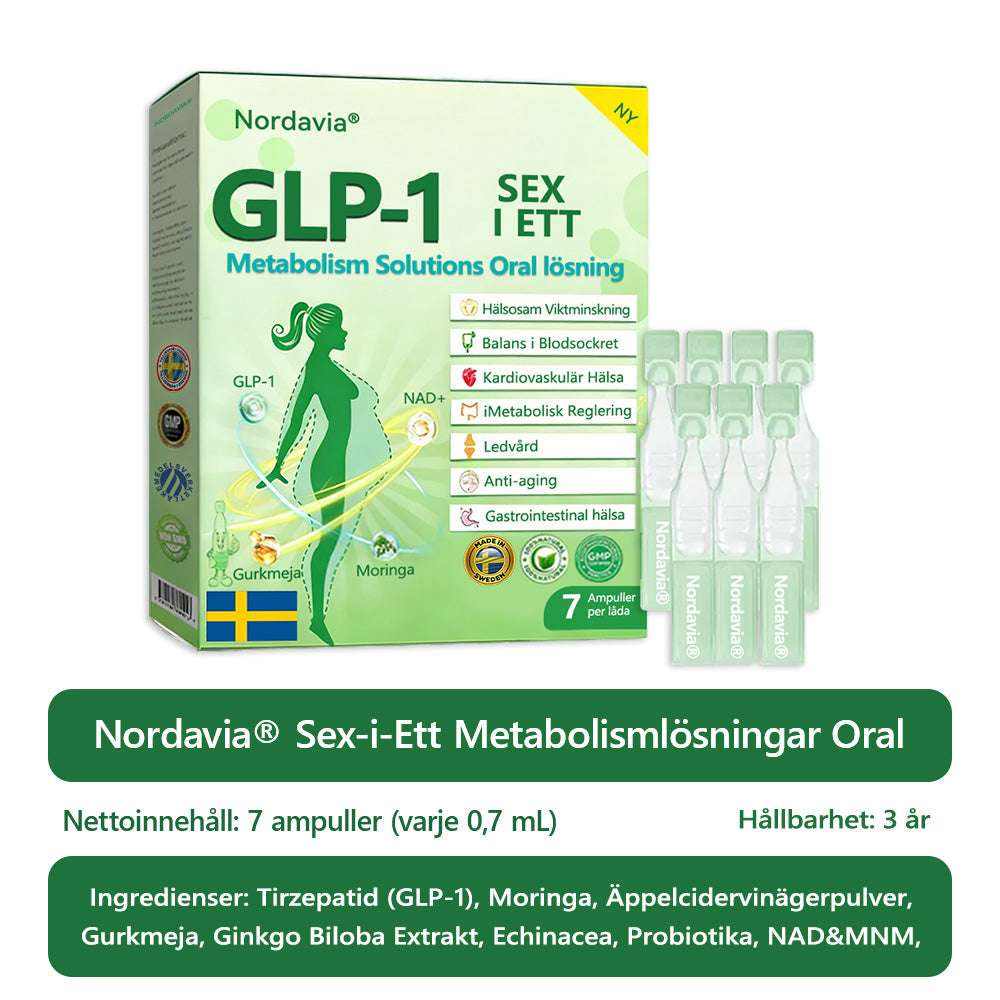 𝑵𝒐𝒓𝒅𝒂𝒗𝒊𝒂®𝑮𝑳𝑷-1 𝑺𝒆𝒙-𝒊-𝒆𝒏 𝑴𝒆𝒕𝒂𝒃𝒐𝒍𝒊𝒔𝒎𝒍ö𝒔𝒏𝒊𝒏𝒈𝒂𝒓 𝑶𝒓𝒂𝒍𝒕 𝑳ö𝒔𝒏𝒊𝒏𝒈 utvecklades av ett team på över 30 experter inom internationell endokrinologi och diabetologi efter mer än 3 års forskning. Den kombinerar Tirzepatid med kraftfulla växtbaserade ingredienser för att boosta metabolismen, accelerera fettförbränning och stödja matsmältnings- och lymfsystemets hälsa. Denna oral lösning har godkänts av Läkemedelsverket (MPA) för sin säkerhet och effektivitet, och erbjuder en vetenskapligt baserad lösning för viktminskning och övergripande välmående.